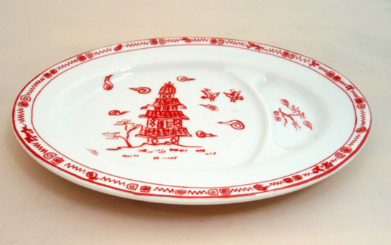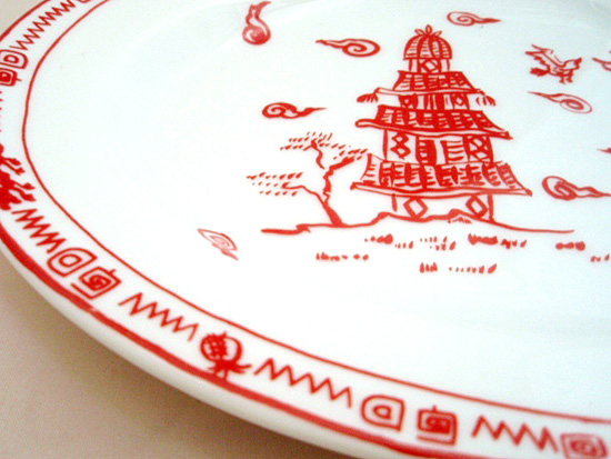 デザインを銅版におこしてその絵柄を和紙に転写し、さらに素焼きの状態の生地に写し取る技法です。